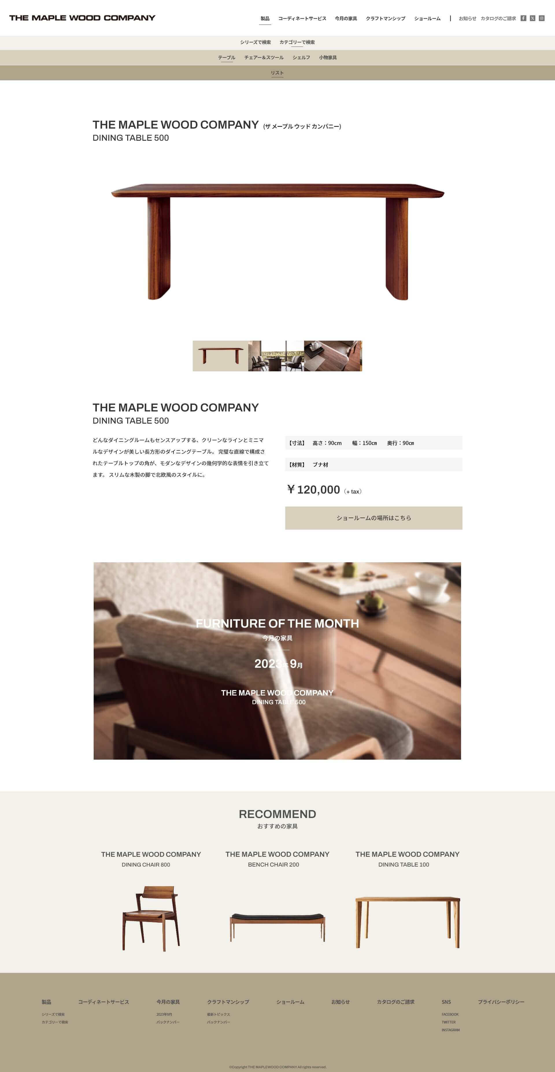 家具店のウェブサイト